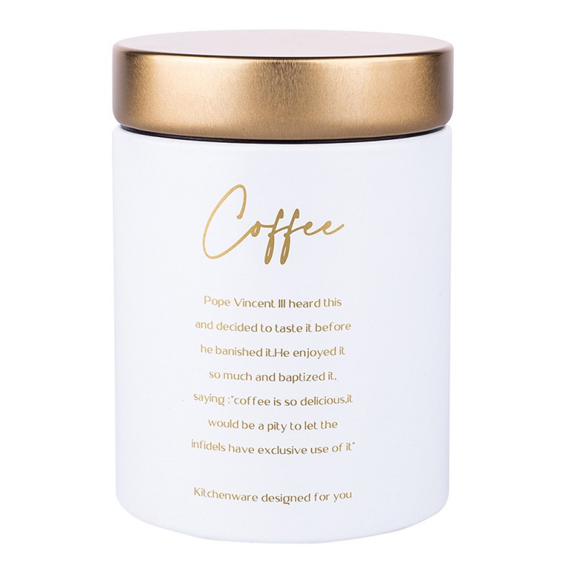 Altom Design okrugla bijela mat limenka sa zlatnim poklopcem 11x11x15 cm dekor Coffee – 0204018433