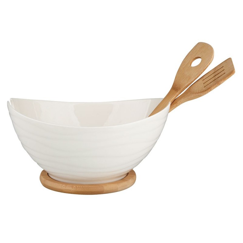 Altom Design zdjela za salatu s podlogom i žlicama od bambusa 29 x 25 x 16cm – 01010052034