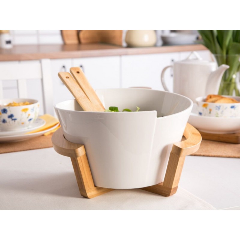 Altom Design zdjela za salatu s podlogom i žlicama od bambusa 29 x 24 x 15 cm – 01010052033