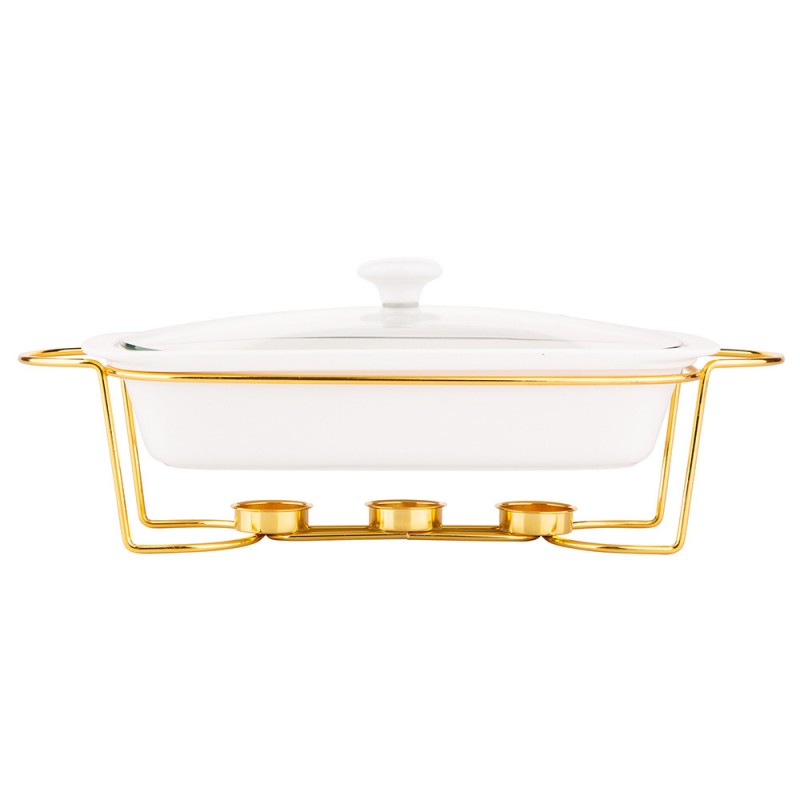 Altom Design pravokutna posuda za pečenje sa grijačem Mesa 1,7L, zlatno postolje – 020101226