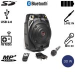 Snažan prijenosni zvučnik s Bluetooth vezom, radiom, bežičnim mikrofonom, USB-om, RCA ulazom i SD karticom. Može se koristiti s gotovo svim uređajima, od televizora,mobilnih telefona i računala do gitara i klavira! Glasan zvuk iz zvučnika od 30W ispunit će prostor jasnim zvukom iz kojeg god izvora odabrali. Bežični mikrofon pratit će vas do najboljih karaoka, a ako spojite druge bežične ili žičane mikrofone možete ih pjevati mnoge zajedno! Pomoću daljinskog upravljača možete ga kontrolirati bez zaustavljanja kako biste se zabavili na trenutak! Zahvaljujući remenu možete ga nositi svugdje kao kovčeg i može raditi s strujom ili s baterijom. Idealan je i najpotpuniji govornik za svaku prigodu, od karaoka i koncerata na otvorenom i zabava do filmova i glazbe kod kuće! Ukupna snaga: 30 W RMS PMPO 120 W MP3 USB i SD/MMC/WMA/WAV utor za karticu Bluetooth bežična veza 2 audio izlaza 1 x 6,5 inča + 1 x 1 inča FM Radio Daljinsko upravljanje Uključen bežični mikrofon Spajanje mikrofona i gitare Audio Ugrađena punjiva baterija Osjetljivost izlaza: 800 ± 30 mv SNR ≥71dB Frekvencija: 20Hz-20kHz Postavka za glasnoću, treble, basha, echo Opcija 2.1 / 5.1 Podržava MP3, MP4, PC, DVD, TV, Laptop, PC, Tablet, mobitel, električni klavir itd.