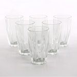 Dimenzije čaša za vodu i sok:visina čaše – 12,5 cm,kapacitet – 280 ml Elegantan, bezvremenski oblik čaša omogućuje im da se podudaraju s klasičnim i modernim ukrasima stola Čaše možete prati u perilici posuđa