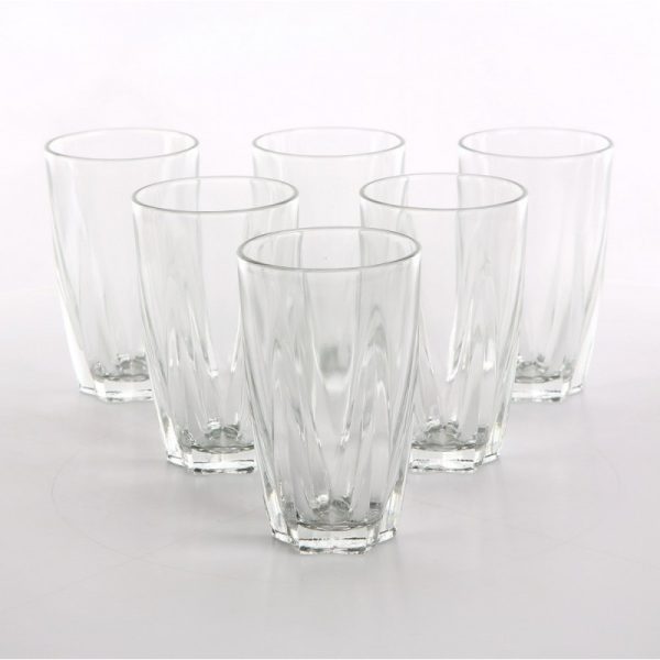 Dimenzije čaša za vodu i sok:visina čaše – 10 cm,kapacitet – 280 ml Elegantan, bezvremenski oblik čaša omogućuje im da se podudaraju s klasičnim i modernim ukrasima stola Čaše možete prati u perilici posuđa