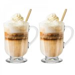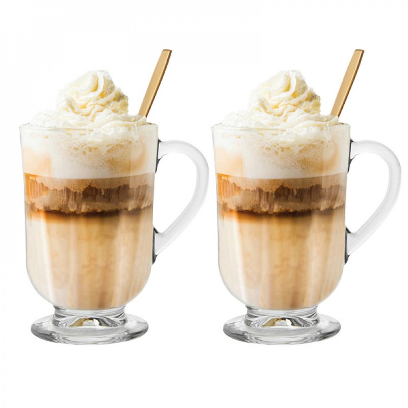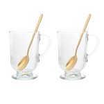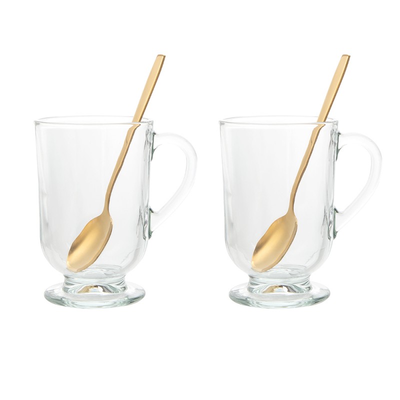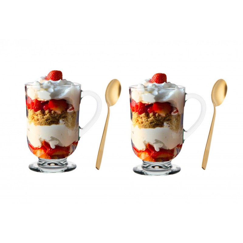 2 x staklena čaša: kapacitet – 310 ml visina – 12 cm 2 x zlatna žličica