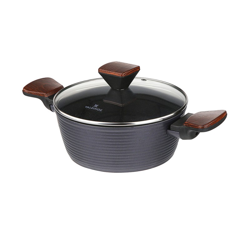 Posuđe iz linije VALDINOX Prime odlikuju se zanimljivom, urezanom vanjskom strukturom i impresivnim ručkama s izgledom egzotičnog drva. Kolekcija kombinira klasiku i modernost, pobudivši zanimljivost i znatiželju na prvi pogled. To uključuje ne samo lonce i tave, već i čajnik, posudu za pečenje i najlonski kuhinjski alat s drvenim ručkama. Čvrsto i izdržljivo kuhinjsko posuđe VALDINOX jamči zadovoljstvo tijekom kuhanja. Prženje ima dodatnu snagu zahvaljujući modernoj tehnologiji. Višeslojni švicarski ILAG Basic premaz učinkovito sprječava lijepljenje i zagaranje posuđa i olakšava pranje posuđa.