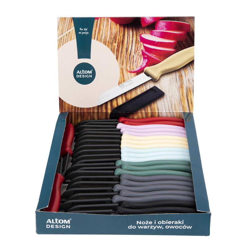 Mali nož za ljuštenje i struganje povrća i voća nezamjenjiv je kuhinjski pomagač. Proizvod se isporučuje u nasumičnoj verziji boje, trenutno dostupnoj u skladištu naše trgovine.