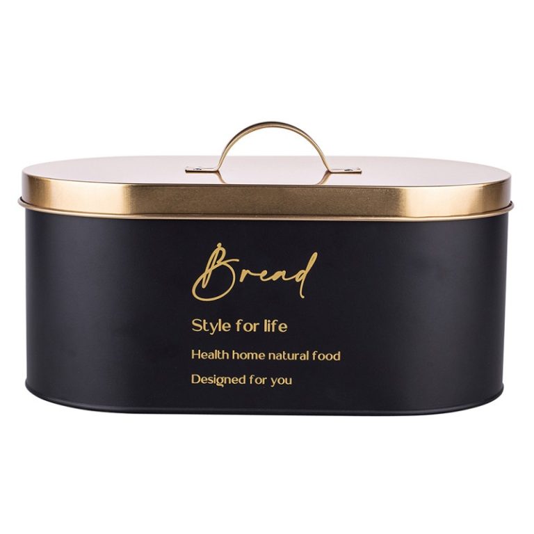 Altom Design kutija za kruh crna sa zlatnim poklopcem 34x18x15 cm – 020401753