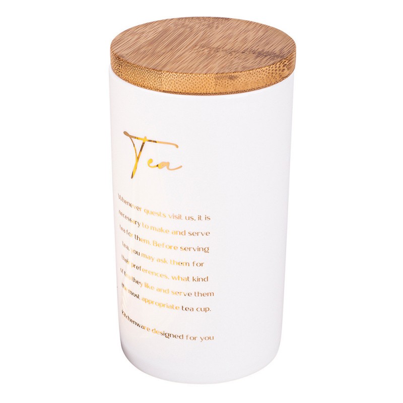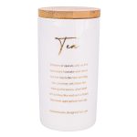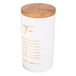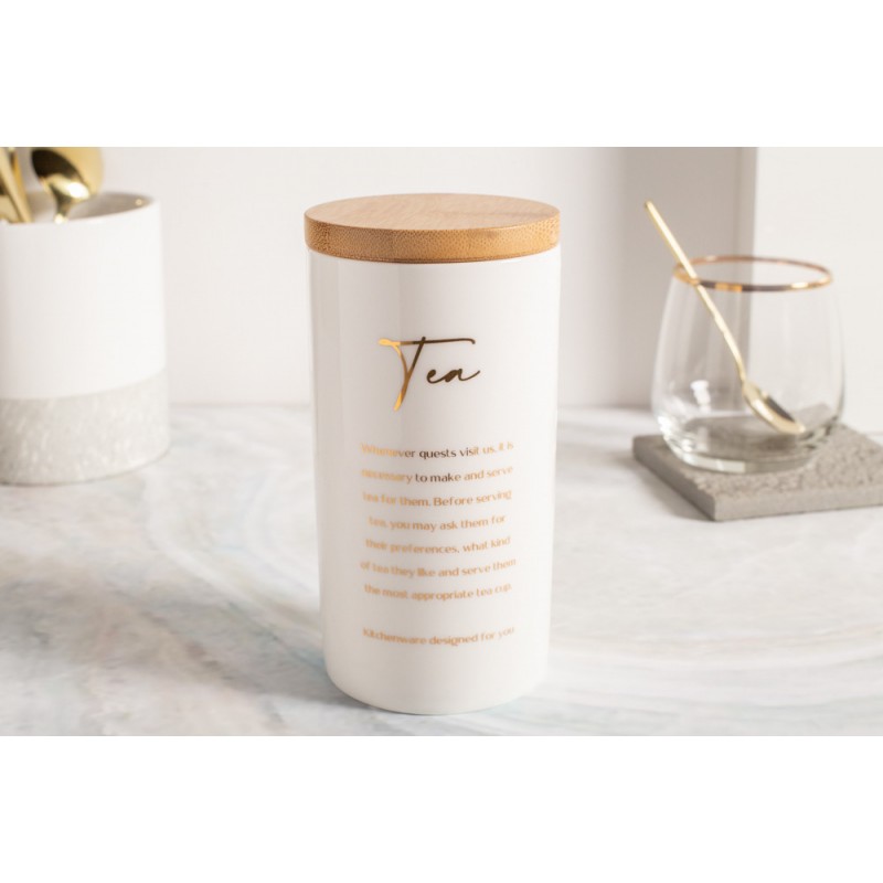 Altom Design porculanski spremnik s bambus poklopcem, bijeli sa zlatnim natpisom Tea – 02010183