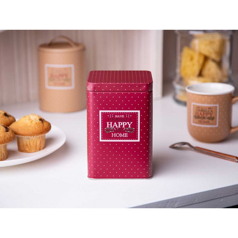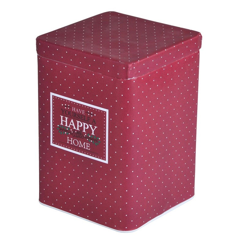 Limenka / posuda za kavu, čaj, šećer, rasute proizvode s četvrtastim poklopcem Altom Design Victoria Home bordo Metalne limenke s poklopcima praktičan su i dizajnerski način za pohranu kave, čaja, šećera i ostalih rasutih proizvoda. Dimenzije limenke: duljina – 10,5 cmširina – 10,5 cmvisina – 16 cm