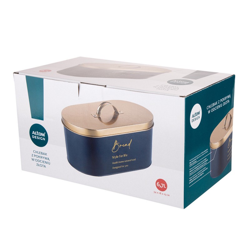 Altom Design kutija za kruh crna sa zlatnim poklopcem 34x18x15 cm – 020401753