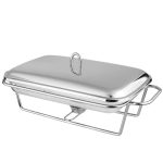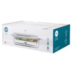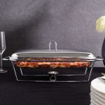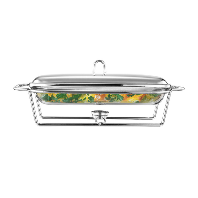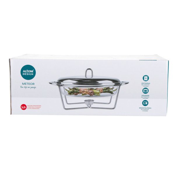 Jela poslužena na stolu koja se ne hlade? Da, sada je to moguće s linijom posuđa otpornih na toplinu na grijaču. Zahvaljujući posudama otpornim na toplinu na grijaču, možemo duže održavati pravu temperaturu, okus i aromu pripremljenih jela, a istovremeno očarati goste učinkovitim posluživanjem. kapacitet – 3,0 ldužine – 48,5 cm širine – 25,5 cm visine – 16 cm Linija posuđa otpornih na toplinu na grijaču kombinacija je elegancije i upotrebljivosti Posuđe na grijaču savršeno je za posluživanje jela tijekom raskošnih zabava Praktična, staklena jela savršeno se stapaju s bilo kojim posuđem Stabilan stalak od kromiranog čelika ima prostora za postavljanje svijeća Zahvaljujući grijačima, poslužena jela dugo će ostati topla Glatka staklena površina može se lako održavati čistom, posuda se može oprati u perilicama posuđa (osim postolja)