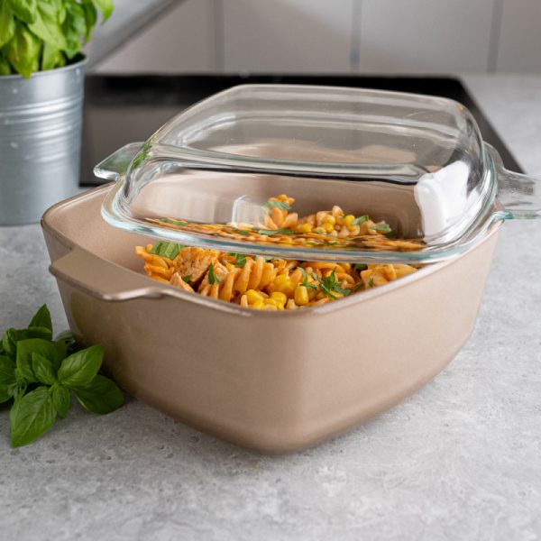 Posuda za pečenje je višenamjenski proizvod – može se koristiti u pećnici, mikrovalnoj pećnici, hladnjaku i zamrzivaču. Posuda otporna na toplinu podnosi visoke i niske temperature – od -20 do 240 °C. Dimenzije tepsije: kapacitet – 3,5 ldužine – 33,2 cm širine – 23,2 cm visine – 13 cm