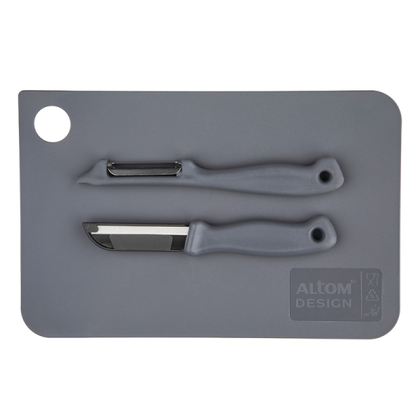 ·      Set je izrađen od izrađena od izdržljive i jednostavne plastike. ·      Daska za rezanje ima pravu tvrdoću i trajnost ·      Izrađena od kvalitetne plastike osigurava higijenske radne uvjete. ·      Daska ne upija mirise. ·      Lako se čisti. ·      Nož, koji je dio seta, je. Kompaktan i oštar, idealno za precizno rezanje i sjeckanje. ·      Zahvaljujući strugaču Nepotrebni slojevi ili prljavština mogu se brzo ukloniti sa različitih proizvoda. ·      Multifunkcionalnost seta ga čini praktičan alat u kuhinji.   1 x Daska za rezanje: duljina – 24 cm, širina – 16 cm 1 x Rezač povrća: Duljina – 6 cm 1 x Strugač: Duljina – 6cm