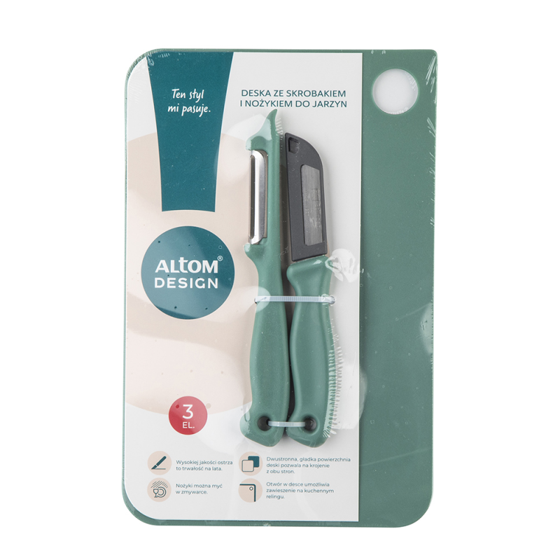 Altom Design set daska za rezanje + nož +strugač,24 cm, zeleni ( 0207020156)