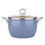 Ako ste ljubitelj lonaca i imate modernu kuhinju, a tradicionalne posude za emajliranje ne pristaju baš najbolje vašoj kuhinji, svakako odaberite Silesia Rybnik Balbina Soft Blue set emajliranih posuda 8 elemenata. Emajlirani set lonaca jedne od najboljih tvrtki Šleska Rybnik bit će koristan u svakoj kuhinji.. stakleni poklopac, koji ima ručku koja se ne zagrijava, izrađen je od komponenata otpornih na oštećenja, lijepa boja nježne plave boje s učinkom vodene površine, debelo dno i zidovi. Prekrasan set lonaca za emajliranje koji preporučujemo apsolutni je must have u svakoj kuhinji. Set lonaca osigurava brzu i jednostavnu pripremu mnogih jela, bez gubitka okusa, arome i nutritivne vrijednosti. Uski premaz cakline je higijenska otopina i lako se čisti. Set lonaca uključuje: · 1 x lonac s poklopcem 16 cm, visina – 11,5 cm, kapacitet – 2,3 l · 1 x lonac s poklopcem 18 cm, visina – 13 cm, kapacitet – 3,3 l · 1 x lonac s poklopcem 20 cm, visina – 14,5 cm, kapacitet – 4,3 l · 1 x lonac s poklopcem 22 cm, visina – 15,8 cm, kapacitet – 5,7 l