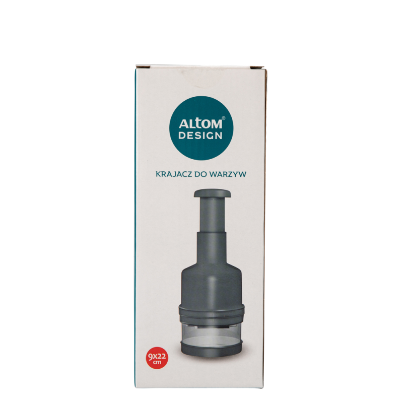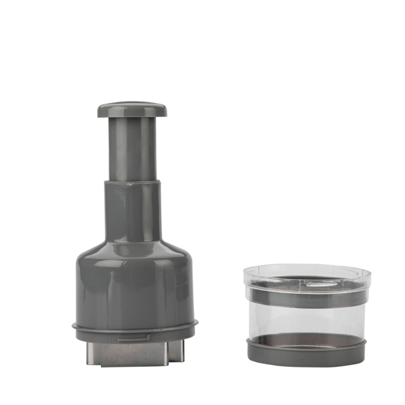 Idealno za brzo i precizno sjeckanje luka i drugog povrća Dimenzija rezača: visina – 22 cm promjer – 8 cm visina spremnika – 6 cm