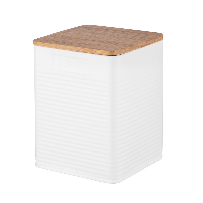 Dimenzije limenke: visina 14 cm širina 11 cm Limenka će dobro funkcionirati za skladištenje šećera, kao i drugih prehrambenih proizvoda. Bambusov pokrov štiti sadržaj.
