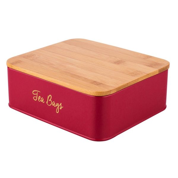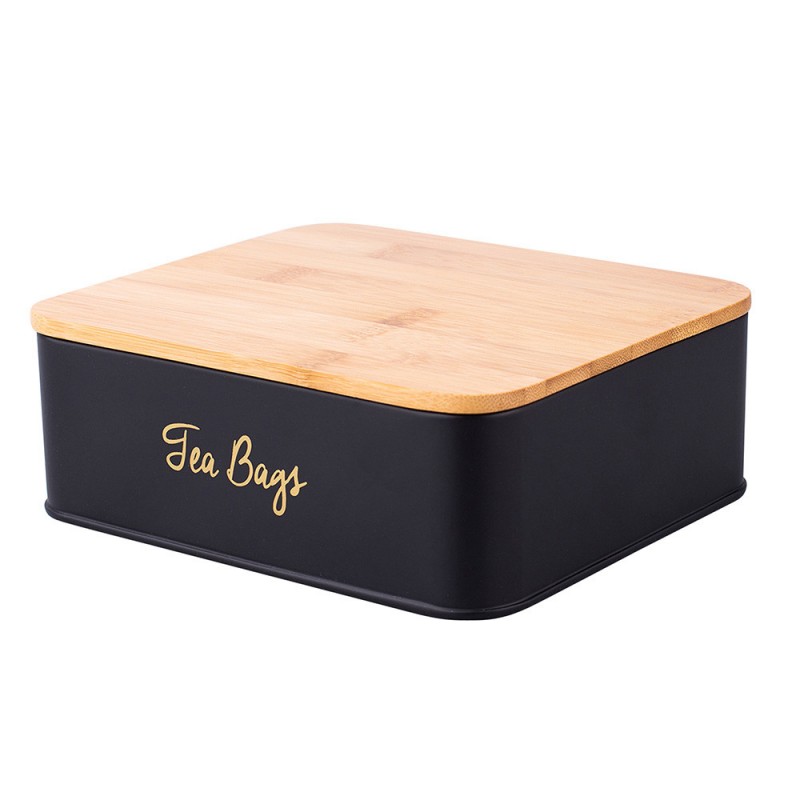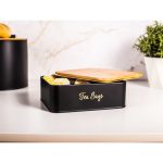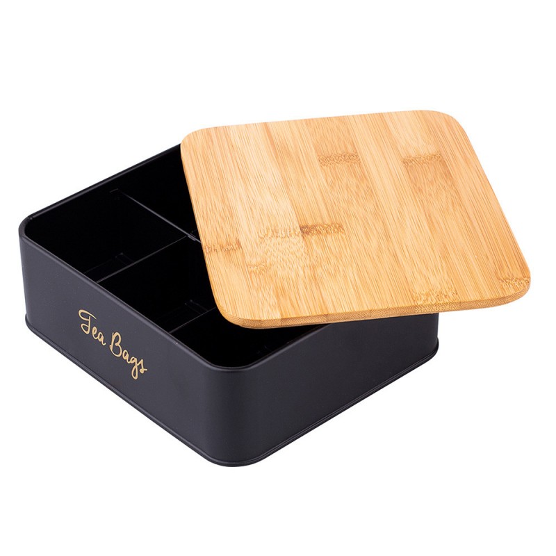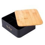 Limenka / spremnik za čaj Altom Design s pretincima i bambusovim poklopcem crne boje, dekor TEA Metalne limenke s bambusovim poklopcima praktični su i dizajnerski način čuvanja čaja u vrećicama. Dimenzije limenke: dužina – 18 cmširina – 15,5 cmvisina – 6 cm
