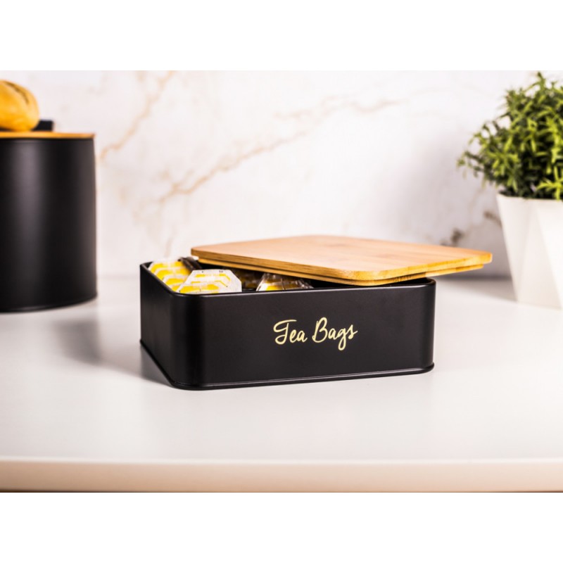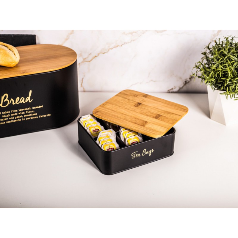 Altom Design spremnik za čaj s pretincima i bambusovim poklopcem,crna boja, dekor TEA -0204018417