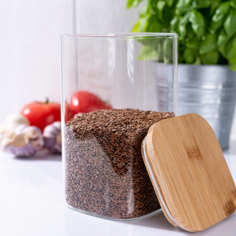 Altom Design staklena posuda / spremnik za rasute proizvode s poklopcem od bambusa 1150 ml ( 0203018359 )