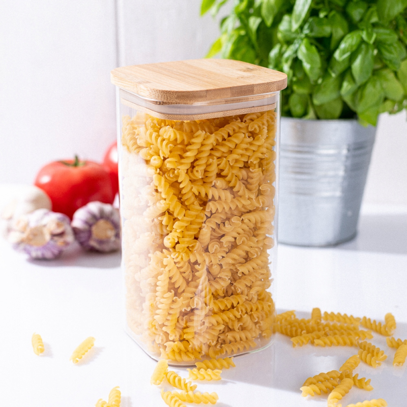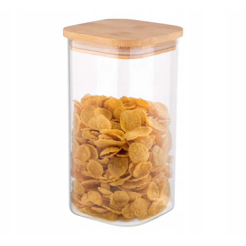 Altom Design BOROSILIKAT KVADRATNI SPREMNIK 800ML S POKLOPCEM OD BAMBUSA I ŽLICOM ( 0203018431 )