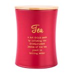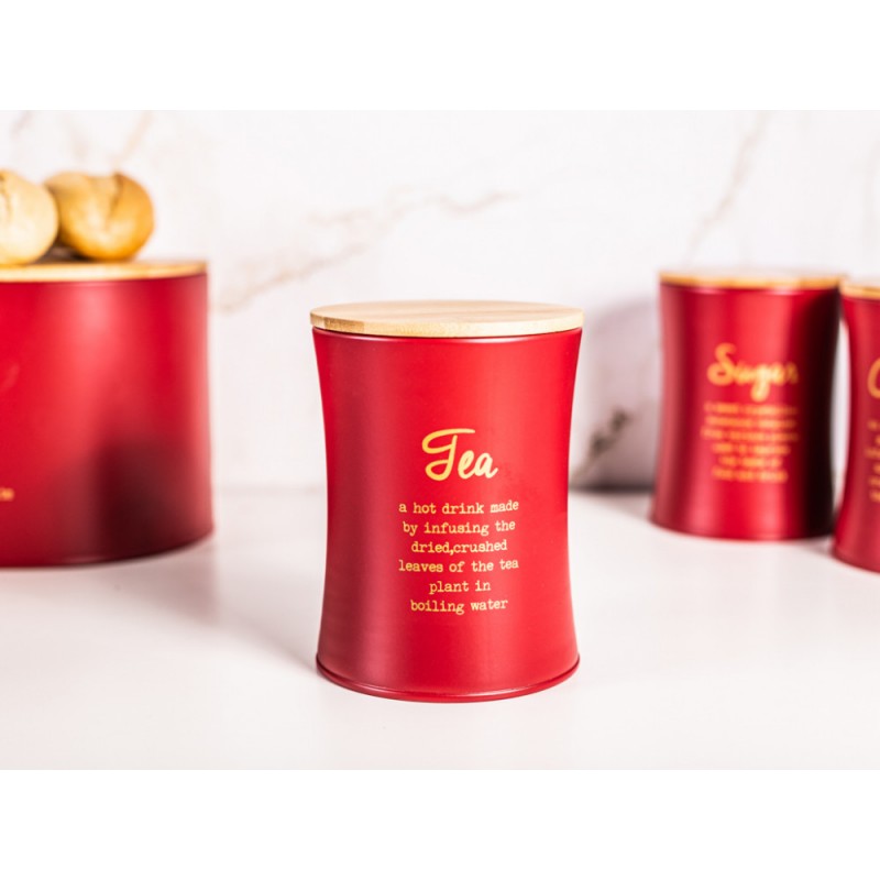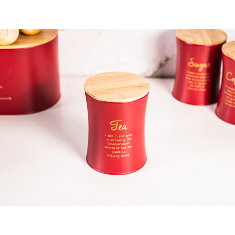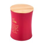Posuda za čaj s bambusovim poklopcem Altom Design crvena, ukras TEA Metalne limenke s bambusovim poklopcima praktični su i dizajnerski način za pohranu kave, čaja, šećera i ostalih rasutih proizvoda. Dimenzije limenke:visina -15 cmširina – 11 cm