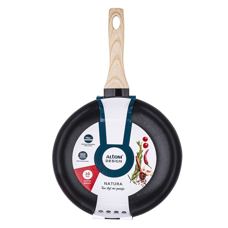 Linija posuđa Natura funkcionalna je i korisna u svim kuhinjama za pripremu ukusnih jela. Veličina tave:promjer – 26 cm Korištenje ŠTEDNJAK INDUKCIJSKI ŠTEDNJAK ELEKTRIČNI ŠTEDNJAK KERAMIČKA PEĆ