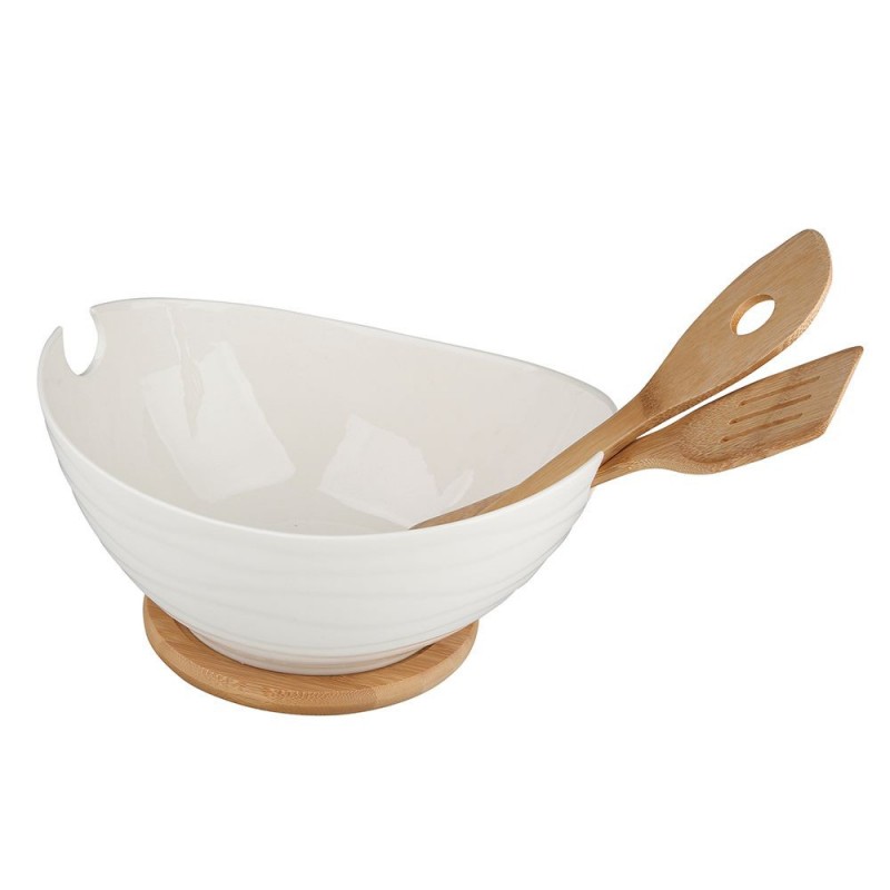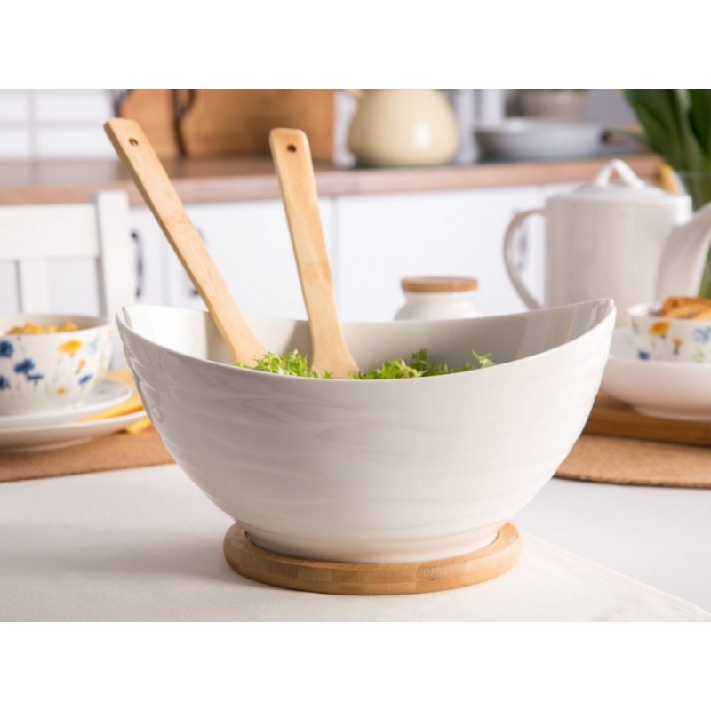 Zdjela za salatu s bazom i žlicama od bambusa Altom Design porculan 29 x 24 x15 cm Set se sastoji od: 1 x kompleta žlica za salatu1 x zdjelice s bambusovom podlogom