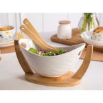 Zdjela za salatu s bazom i žlicama od bambusa, Altom Design porculan 32 x 15 x16 cm Set se sastoji od: 1 x kompleta žlica za salatu1 x zdjelice s bambusovom podlogom