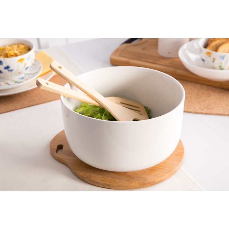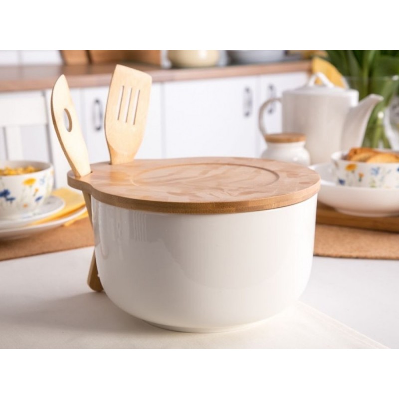 Zdjela za salatu sa žlicama i bambusovim poklopcem Altom Design porculan Set se sastoji od: 1 x kompleta žlica za salatu1 x zdjele s poklopcem širine 14,5 cm i visine 25 cm1 x baze od bambusa