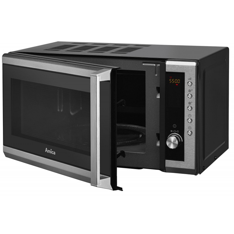 kapacitet 20 litara Mikrovalna snaga 700 W kontroliranje elektronički Osnovne funkcije grijanje, odmrzavanje Način otvaranja vrata sa strane – lijevo Mikrovalni distribucijski sustav prostorni Dodatne funkcije 5 razina snage, 8 automatskih programa, roditeljsko zaključavanje, vremensko odmrzavanje, gubitak težine, zvuk na kraju rada, brzi početak, timer, LCD zaslon, sat Promjer okretne ploče 24,5 cm boja crne i srebrne FIZIČKI PARAMETRI Dimenzije (širina x visina x dubina) 45,2 x 26,2 x 35,1 cm Dimenzije paketa 50 x 40 x 30 cm Težina pakiranja 11 kg