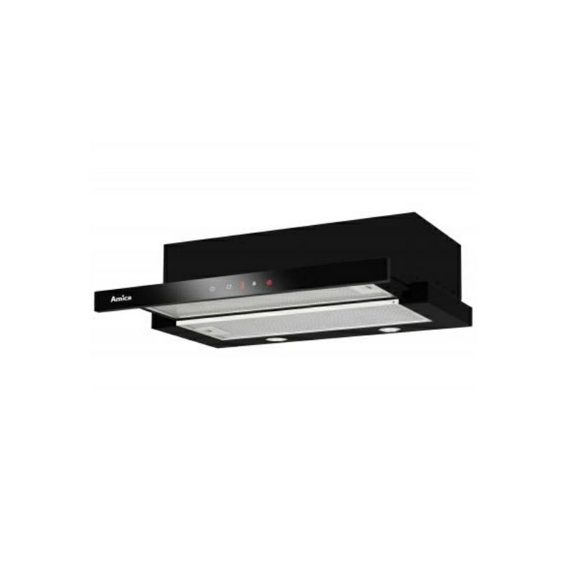 OTP6641BGAmica teleskopska napa 60 cmSensor control systemAutomatsko isključivanje2 LED svjetla (3,5W)3 brzine1 motorSnaga izvlačenja: 334 (m3/h)Glasnoća pri max brzini: 63 db2 aluminijska filtera za masnoćuBoja: crni inox/crno staklo
