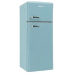 Nova linija hladnjaka retro izgleda dolazi u pet različitih boja i tri veličine. Odlikuje ih E razred, koji osigurava ekonomičnu upotrebu. Elegantan dizajn svakoj kuhinji osigura novu energiju.boja: svijetlo plava, ručke i rub između hladnjaka i zamrzivača od inoxaenergetski razred: Evrsta aparata: samostojeći, dvoja vrataukupni bruto volumen: 210Lvolumen hladnjaka: 162Lbroj polica: 3, kaljeno staklobroj polica na vratima: 3broj posuda za voće i povrće: 1LED osvjetljenjevolumen zamrzivača: 44Lbroj polica u zamrzivaču: 1razred zamrzavanja: */***održavanje temperature u slučaju nestanka struje: 12 satiantibakterijski sustavotvaranje u desnu stranugodišnja potrošnja energije: 180 kWdimenzije (VxŠxD): 144 x 55 x 61,5 cm