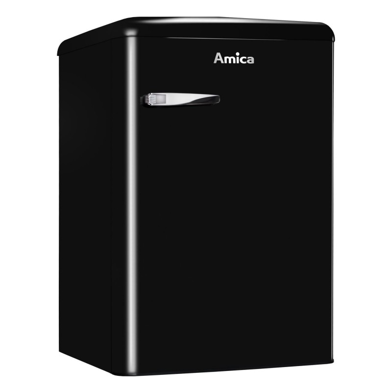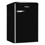 Nova linija retro hladnjaka u boji nudi izbor od tri različite boje i veličine. Sve modele u liniji odlikuje energetski razred A++, koji osigurava iznimno štedljivu upotrebu. Elegantni dizajn unosi novu energiju u svaku kuhinju. energetski razred: A++ vrsta uređaja: samostojeći, jednokrilni ukupna bruto zapremnina: 108 L zapremnina hladnjaka: 93 L broj polica: 2, kaljeno staklo broj polica u vratima: 3 broj spremnika za voće i povrće: 1 LED rasvjeta zapremnina zamrzivača: 13 L razred zamrzavanja: */*** održavanje temperature u slučaju nestanka struje: 12 sati antibakterijski sustav otvaranje u desnu stranu boja: crna, ručke i rub između hladnjaka i zamrzivača od inoxa godišnja potrošnja energije: 172 kWh dimenzije (V x Š x D): 86 x 55 x 61,5 cm