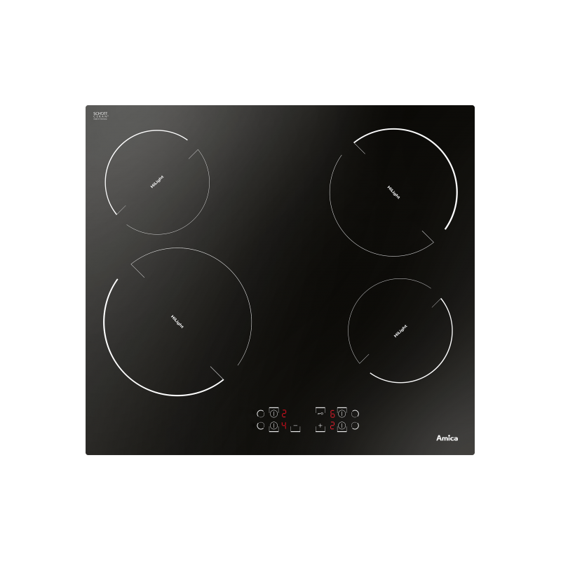 Staklokeramička ploča sa kontrolama na dodir4 zone za kuhanje;Integrirani senzor upravljačke ploče; Timer;Alarm; Indikator zaostale topline zona za kuhanje;Sistem za automatsko ključanje; Zaključavanje pločeelektrična isijavajuća zona 14,5 cm (1,2kW)električna isijavajuća zona 14,5 cm (1,2kW)električna isijavajuća zona 18 cm (1,8kW)električna isijavajuća zona 21 cm (2,3kW)Dimenzije: 576 x 518 mm;