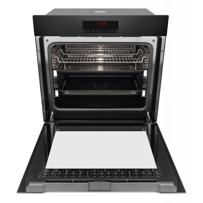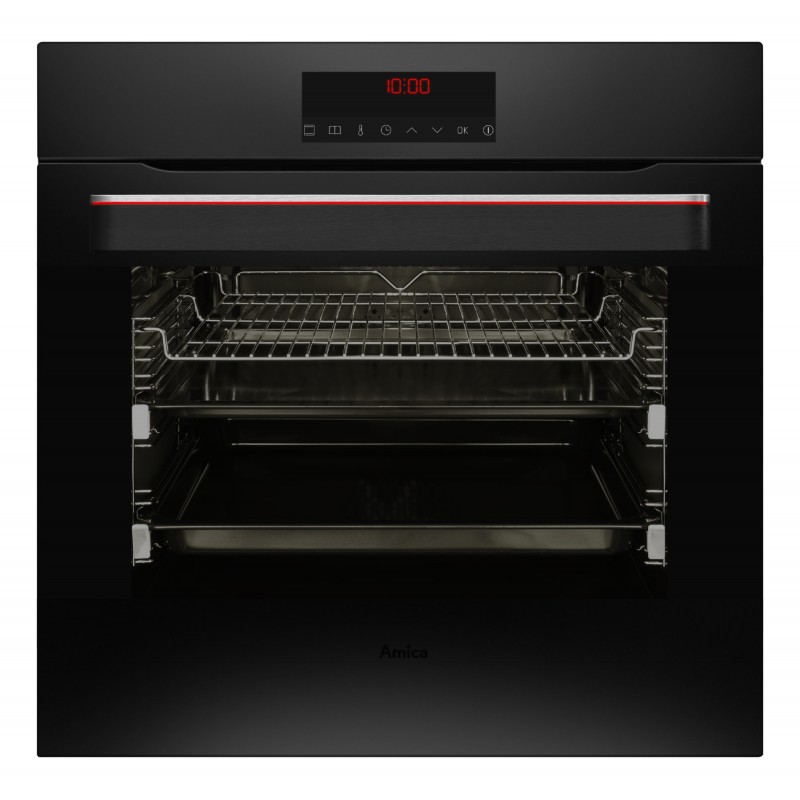Visina 59,5 cm Širina 59,5 cm Dubina je 57,5 cm Boja mat crna A + energetska klasa Kapacitet pećnice 77 l Ukupna snaga 3,6 kW Gornji grijač od 900 W Donji grijač od 1100 W Prstenasti grijač od  2100 W 1500 W električni roštilj Vrsta pećnice: električna Broj funkcija pećnice: 11 Broj unaprijed postavljenih programa: 19 Predgrijavanje za 3 minute. Amica BakingPro System ® Čak i pečenje na nekoliko razina Tci programer Bočne vodilice Teleskopske vodilice sa funkcijom STOP Čišćenje pećnice: katalitičko Jednostavno čišćenje cakline Lako rastavljanje vrata Zatamnjena stakla Hladna prednja strana (3 stakla) Reflektirajuće staklo SoftClose Osvijetljena ručka WiFi – upravljanje pametnim telefonom Ljestve za sušenje Zatvorena gornja šipka vrata SoftLight Gornja halogena rasvjeta Zaključavanje programera Recepti na vratima Širok raspon temperatura: 30 ° C – 280 ° C