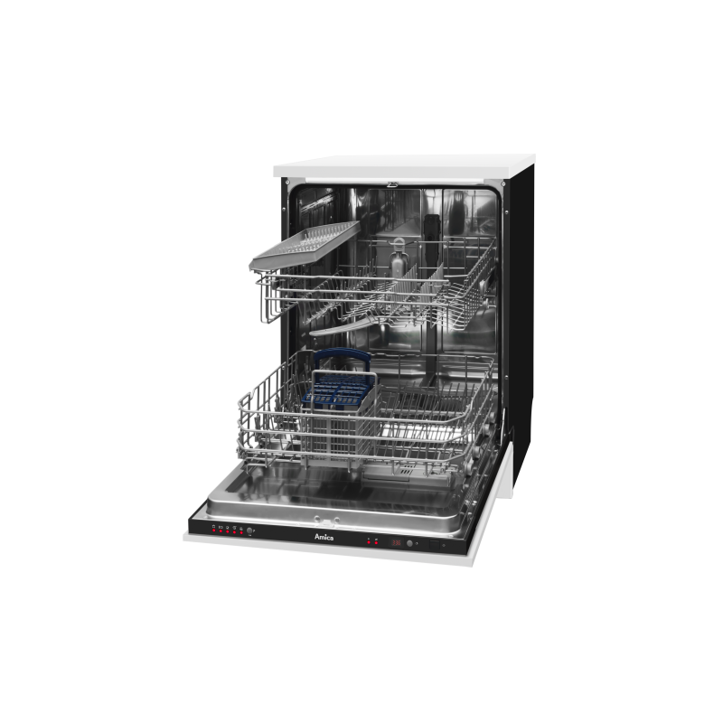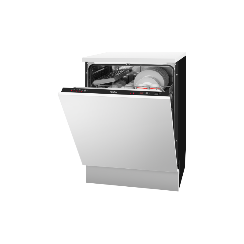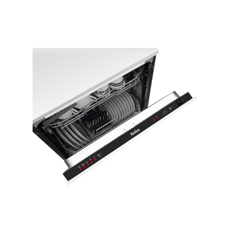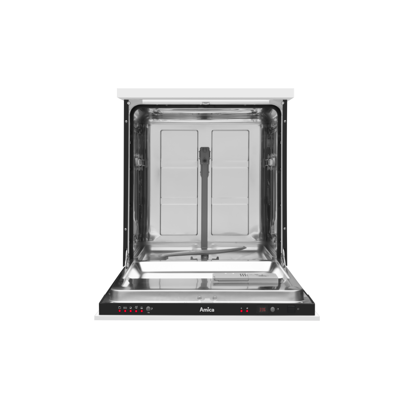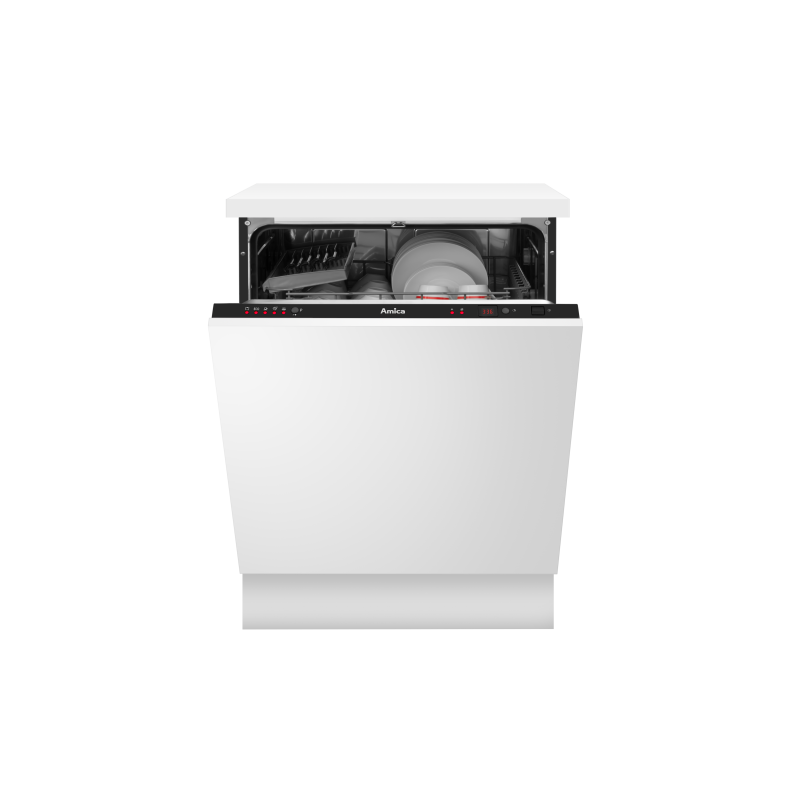 Amica Ugradbena perilica posuđa 60 cm Klasa energetske efikasnosti: A++ Klasa učinkovitosti sušenja: A Kapacitet: 12 Razina buke: 49 dB Potrošnja energije: 0.9 kWh Potrošnja vode: 11 l 5 programa pranja Intenzivni program 60 °C / Brzi program 40°C / Eco program 45°C / Normalni program 45 °C/Predpranje 12 min Potpuno integrirana upravljačka ploča / Odgoda starta: 1-24h / Svjetlosni indikator nedostatka sretstva za sjaj / Indikator nedostatka soli / Sistem sušenja vrućim zrakom / Aquastop zaštita od prelijevanja / Košara za pribor za jelo / Child lock/ pranje po zonama/ LED display Slika s prednjom frontom je simbolična, isporuka ne sadrži prednju masku