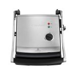 Možete grilati cijele godine Ploče su premazane slojem otpornim na grebanje Quantanium koji sprečava prigaranje hrane. Čišćenje ploča vrlo je jednostavno – dovoljno je uzeti papirnati ručnik i prebrisati površinu bez deterdženta. Podesiva temperatura Zahvaljujući opciji podešavanja temperature od 180 – 220 stupnjeva, možete pripremiti velik broj različitih jela. Niža temperatura prikladna je za sendviče, a viša temperatura idealna je za sočne odreske. Podesiv nagib i visina ploča za pečenje Lako čišćenje Roštilj GR 4011 dolazi u paketu sa špatulom posebno dizajniranom za ove ploče za jednostavno čišćenje.