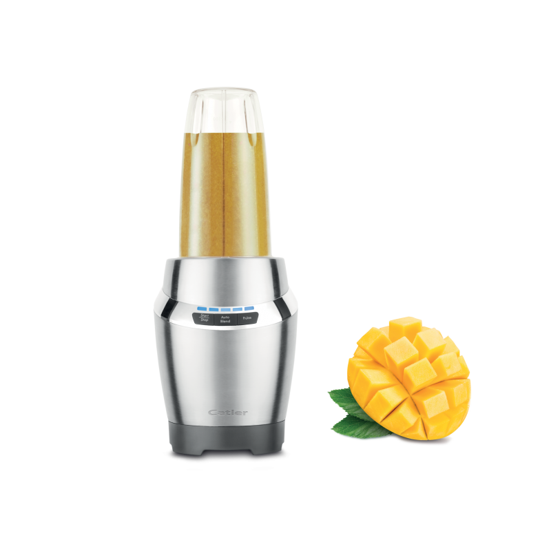 Ako vam jutarnje osvježenje sa smoothiem postaje i dnevni ritual za vas, zasigurno ćete cijeniti ovaj dobro opremljeni mikser za miješanje. Lako je upravljati pomoću gumba s LED indikatorima na velikoj prednjoj ploči. Možete odabrati između sljedećih načina: sjeckanje, miješanje svježe ili zamrznute hrane, smoothie i Pulse. Intuitivna upravljačka ploča s LED indikatorimaVelika i manja šipka i kapica s ručkomMože se oprati u perilici posuđaDruga mogućnost je drobljenje leda ili puna snaga s Pulseom Takve značajke u kombinaciji s vrlo oštrim noževima i snažnim motorom neće vas ograničiti samo na smoothie, nego će proširiti vaše kulinarske mogućnosti. Na primjer, možete napraviti sladoled, sorbe, umake, začinsko bilje, pa čak i tekuće tijesto i oživjeti svoju prehranu svaki dan. Dvije Tritan staklenke, 710 ml i 530 ml