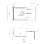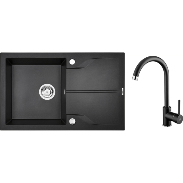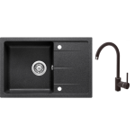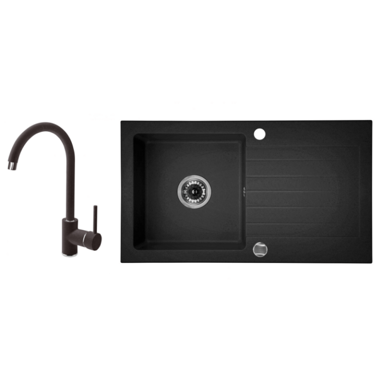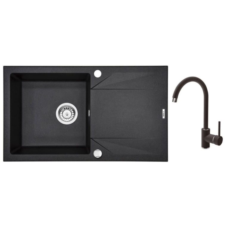 Komplet granitnog sudopera i slavine u crnoj boji (grafit) unosi dašak elegancije u svaku kuhinju zahvaljujući svom atraktivnom izgledu Sudoper: način montaže: klasičan dimenzije (D x Š x D): 67 x 44 x 15,2 cm veličina elementa: 50 cm promjer odvoda: 3,5” izvedba: reverzibilno (okretna) uključeno: sifon i izljevno preljevna garnitura Slavina: oblik: s jednom ručkom materijal: u boji način montaže: stojeći visina: 35,5 cm duljina do odvoda: 17,3 cm klasa protoka: Z – 9 l/min razina buke (dB): I – ispod 20 Jamstvo: 10 godina