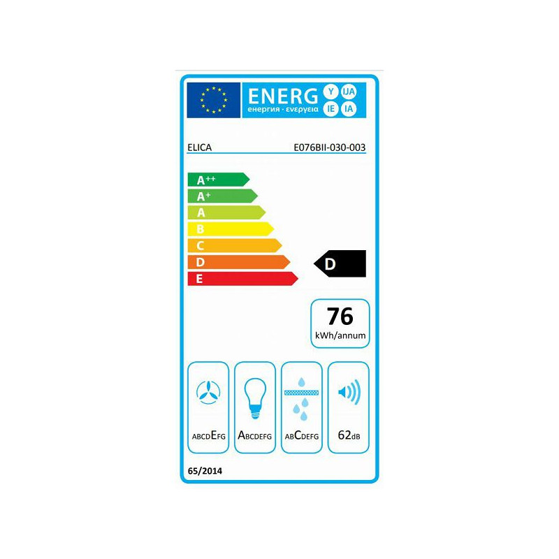 Veličina 60 cmOpcije radaNa odvod, filtrirajucaZavršna obradaPlemeniti celik + stakloRavjetaLed 2 x 2,5 WIntenzitet 141 LUXTemperatura 3500 KUpravljanjeMehanicke komande sa 3 brzineInt. protok zraka 365 m³/hRazina buke 62 db(A)Ukupna snaga 140 WPromjer odvoda 150 mmEnergetski razred D (A++/E)Aluminijski filter za masnocu ukljucen u isporuku