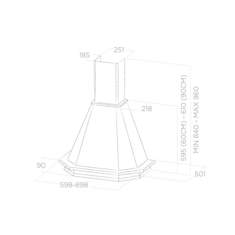 Energetska klasa D Veličina 60 cm Završna obrada Bijela Okvir Neobrađeno drvo tulipanovca Verzija Na odvod Upravljanje Klizno 3 brzine Tip Led 2×3 W Maks. protok zraka 435 m 3 / h Razina buke 65 db(A) Ukupna snaga 146 W Promjer odvoda 120 mm