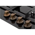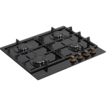 4 plinska plamenika Prednja kontrola Integrirano električno paljenje Sustav sigurnosti plina Nosači od lijevanog željeza Uključene mlaznice LPG-a Dimenzije: 59×52 cm Boja: Crna