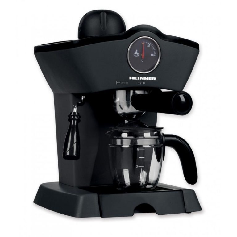 Heinner HEM-200RD aparat za espresso, snaga: 800 W, prozirni odvojivi kapacitet spremnika: 250 ml, tlak pumpe: 3,5 bara, prednji termometar za vodu, mogućnosti pripreme: espresso i cappuccino, uklonjivi odvodni pladanj, kotao od aluminijske legure, filtar za 4 šalice kave, boja: crvena