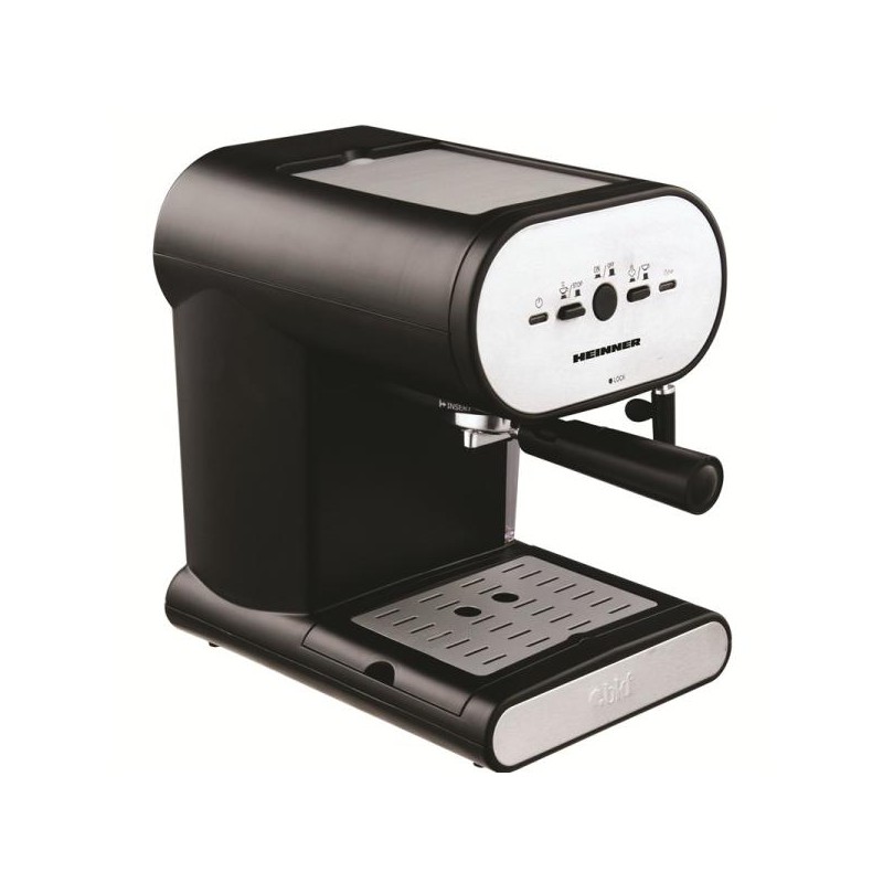 Aparat za espresso kavu Heinner Soft Cream HEM-250 Snaga : 1050W 15 barska tlačna pumpa odvojivi prozirni kapacitet spremnika: 1l, mogućnosti pripreme: espresso i cappuccino odvojivi i perivi pladanj za kapanje i metalna ploča za čaše kotao od aluminijske legure sa sigurnosnim ventilom s ukrasom od nehrđajućeg čelika, boja: crna i nehrđajući čelik