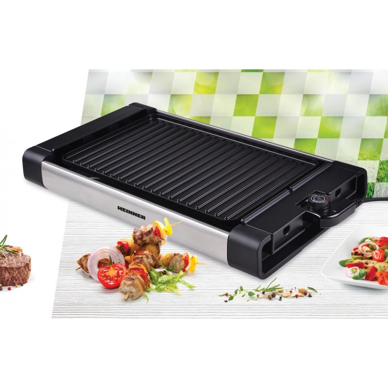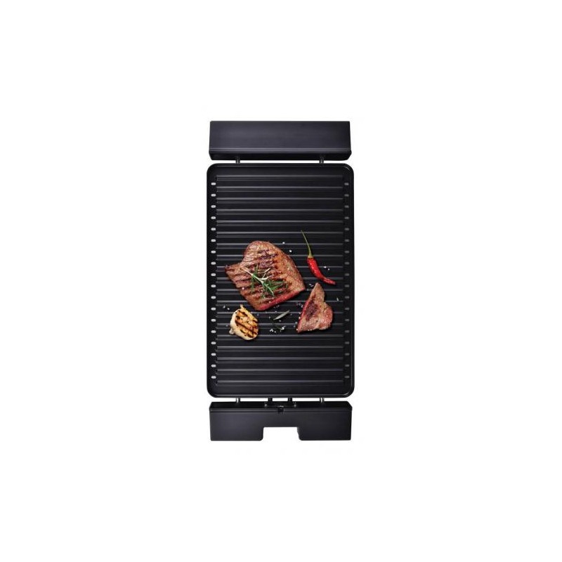 Glavne karakteristike Neljepljiva odvojiva ploča Podesiva temperatura 150ºC – 210ºC Posuda za kapanje i sakupljanje ulja Prednja ploča od nehrđajućeg čelika Tehnički podaci Dimenzije ploča: 41 x 26 cm Snaga: 1800W