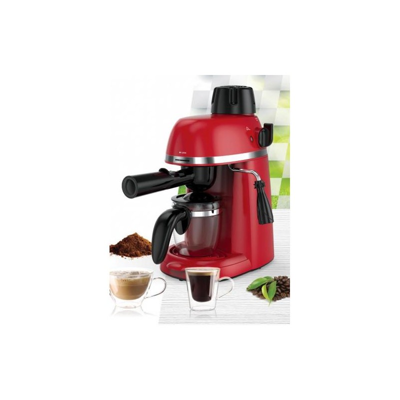 Tlak od 3,5 bara   Filter od nehrđajućeg čelika   Kapacitet: 240 ml    Karakteristike Kotao od legure aluminija   Opcije : espresso i cappuccino   Staklena vrč   Tehnički podaci Snaga: 800W   Napon: 220-240 ~ 50-60Hz Za espresso aparate preporuka je koristiti srednje fino mljevenu kavu !   Fino ili ekstra fino mljevena kava može začepiti čeličnu mrežicu od aparata.