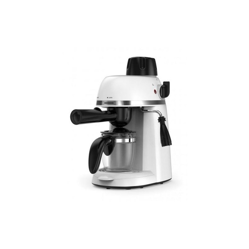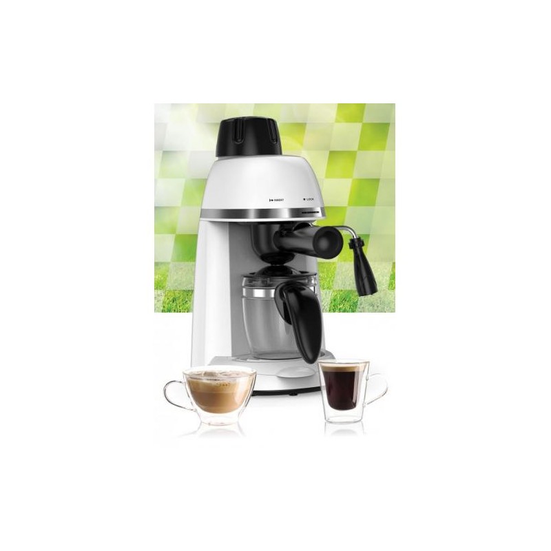 Tlak od 3,5 bara   Filter od nehrđajućeg čelika   Kapacitet: 240 ml    Karakteristike Kotao od legure aluminija   Opcije : espresso i cappuccino   Staklena vrč   Tehnički podaci Snaga: 800W   Napon: 220-240 ~ 50-60Hz Za espresso aparate preporuka je koristiti srednje fino mljevenu kavu !   Fino ili ekstra fino mljevena kava može začepiti čeličnu mrežicu od aparata.