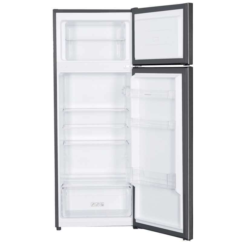 Hladnjak Heinner HF-H2206BKF +, Klasa energetske učinkovitosti: F, Ukupni kapacitet: 206L, Kapacitet hladnjaka: 169L, Kapacitet zamrzivača: 37L, Mehaničko upravljanje s podesivim termostatom, LED svjetlo, 3 staklene police hladnjaka, 1 odjeljak za voće i povrće, Reverzibilna vrata, Ladica za jaja, Kapacitet smrzavanja: 2,4 kg / 24h, Dimenzije (ŠxDxV): 54,5 x 55,5 x 143 cm, Boja: Crna