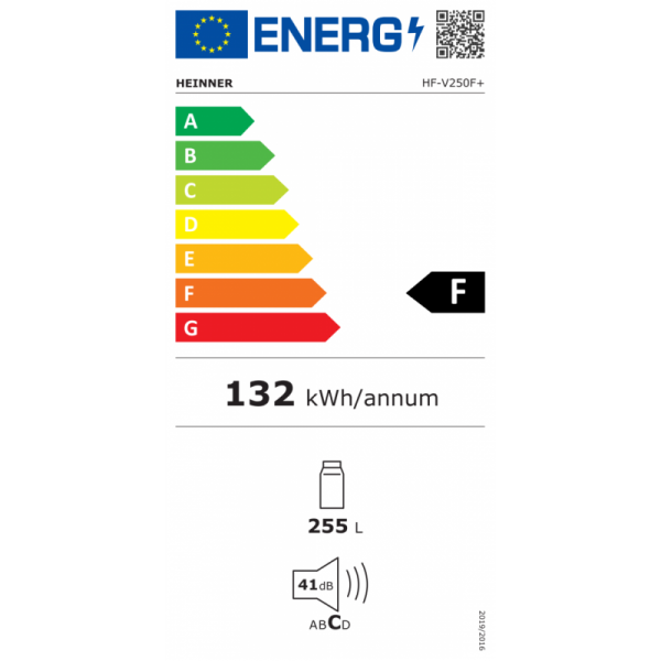 Hladnjak Heinner HF-V250SF+, energetski razred: F, ukupni kapacitet: 255L, mehanička kontrola s podesivim termostatom, LED svjetlo, automatsko odmrzavanje, 4 staklene police, odjeljak za voće i povrće, držač jaja, reverzibilna vrata, dimenzije: 54 x 59,5 x 144 cm, boja: srebro